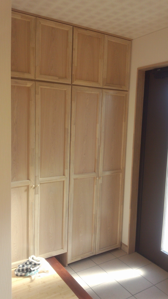 お客様のご希望で建具・造作家具・人口枠・額縁を明るく仕上げてあるので、家全体がやさしい感じに仕上がっています。