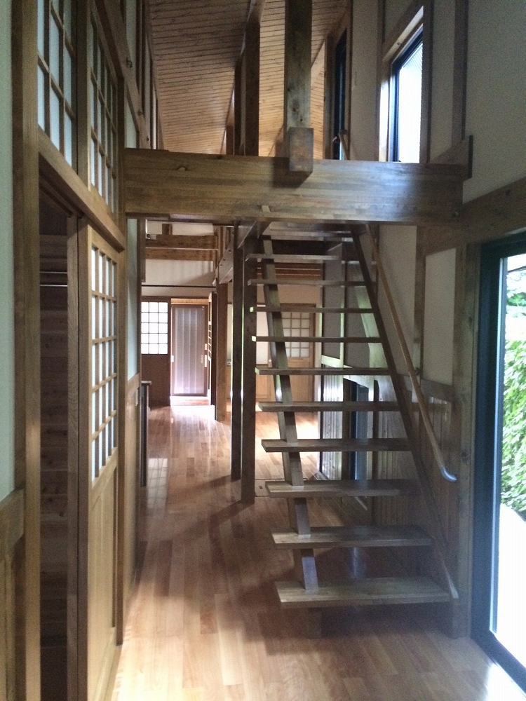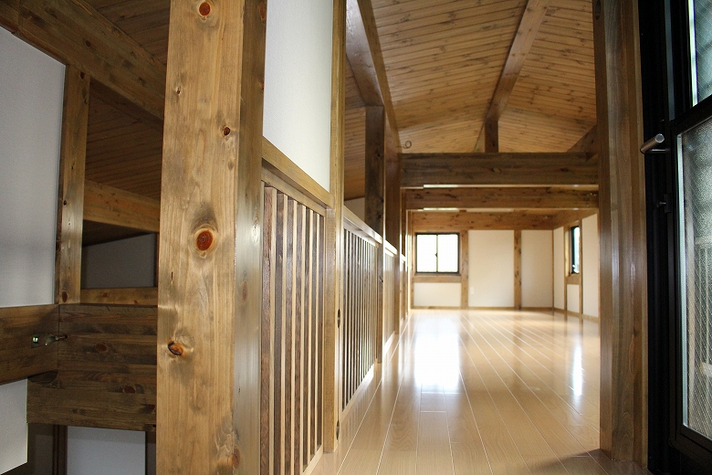 お客様が空手を教えている倉庫の隣に建てることになったのですが、細長い土地の形状をうまく利用できたと思います。
