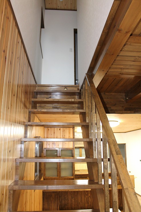 LDKにあるストリップ階段から子供さんが覗いてママと遊んでいるのが可愛かったです。
