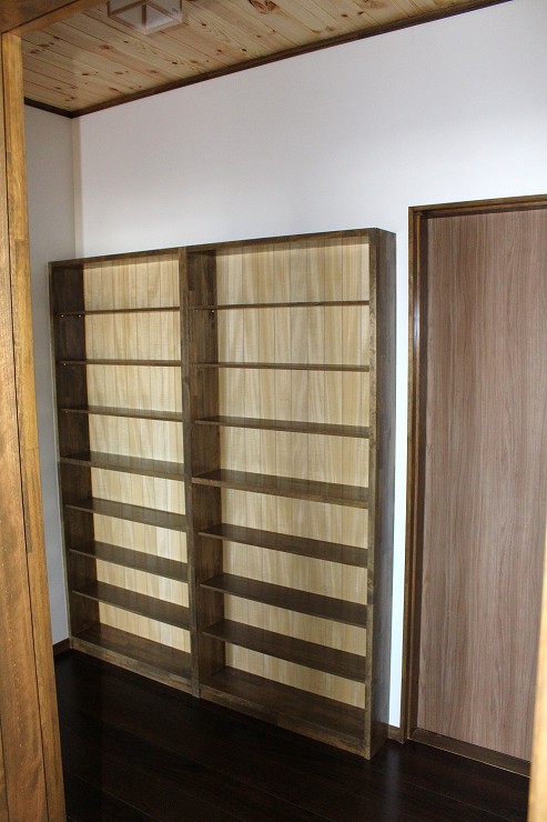 2階ホールは、本棚を2つ取り付けました。座りながら家族で本を読むスペースにしてあります。