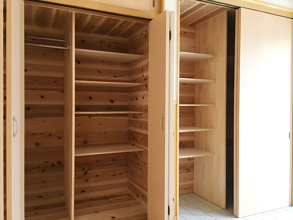玄関の造作をしているとお客様から『両親が近くに住んでいて遊びに来ることがよくあると思うんですが足が少し悪いんですよ。』と伺ったので、靴が履きやすい様にクワの木で製作した腰掛けを設置し大変喜んでくださいました。