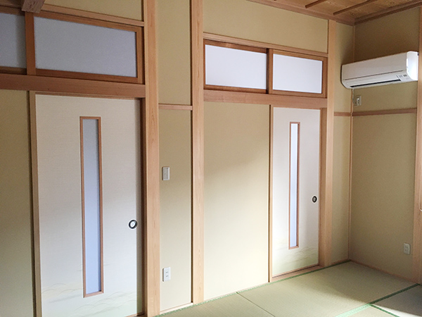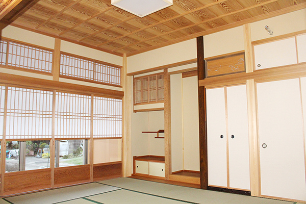 和室は、猿頬天井・床の間・仏間・神棚、お母様が裁縫ができるように広い縁側にしてあります。