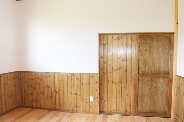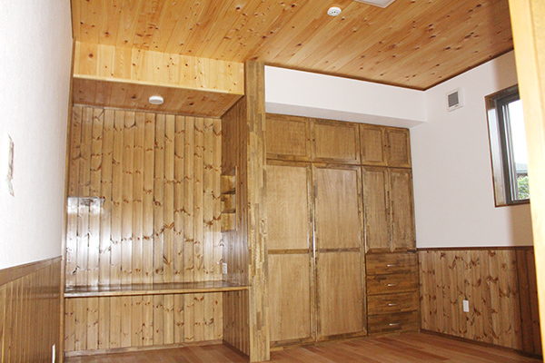 弟さんのお部屋は、PCデスクや壁面収納を製作して腰板を張り洋風に。