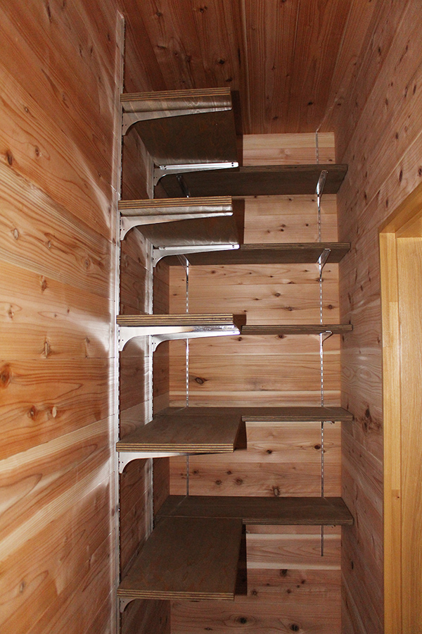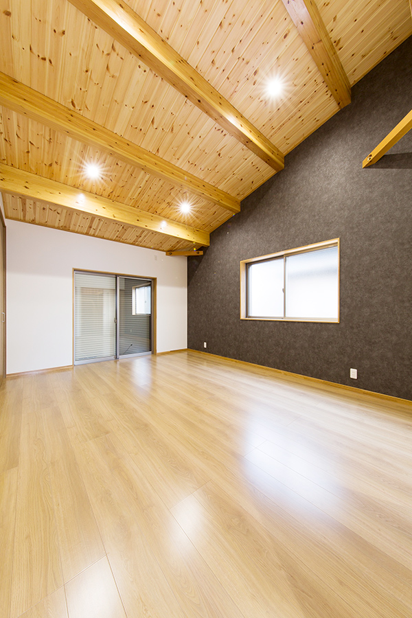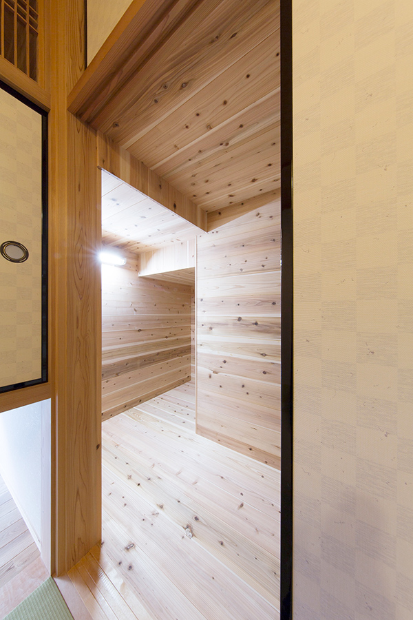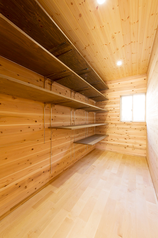 お子様の2部屋は、それぞれ天井の角度を変え、杉板で仕上げたクロゼットを造りました。