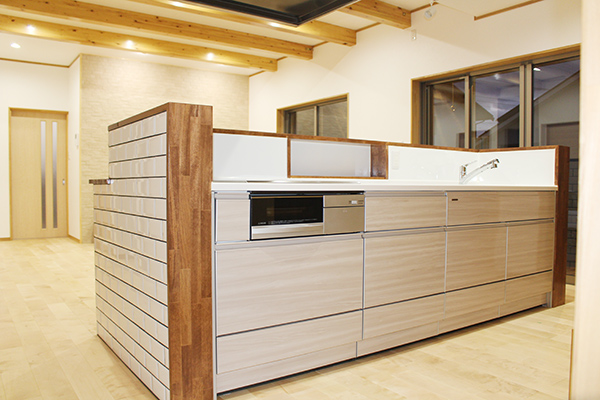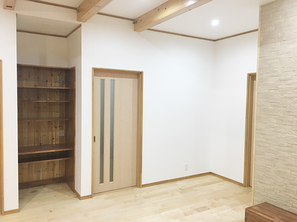 また、キッチンで料理を作りながら小さなお子様が見えるように洋和室を隣接し、キッチン横には大きめなパントリーを設けました。