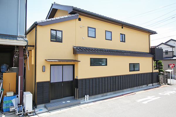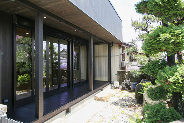 玄関がある南側は鎧張りを、ベランダの手すり部分は杉板を張り、縁側だった場所をウッドデッキにしました。