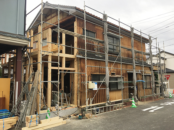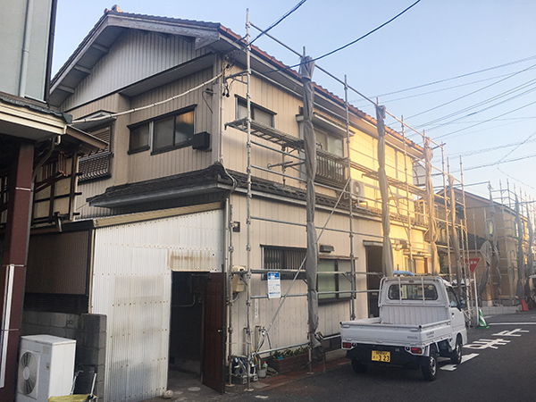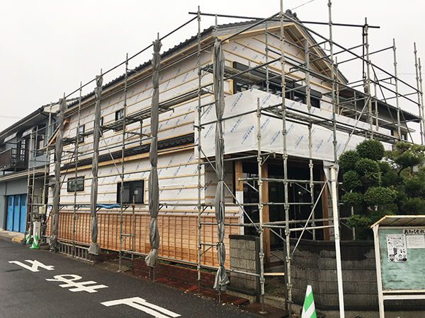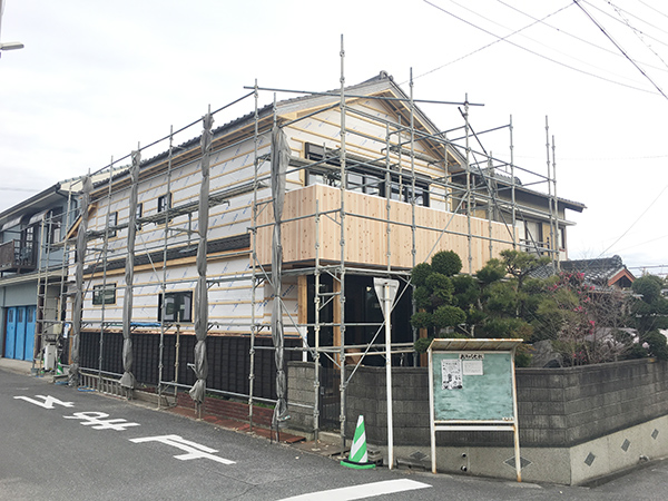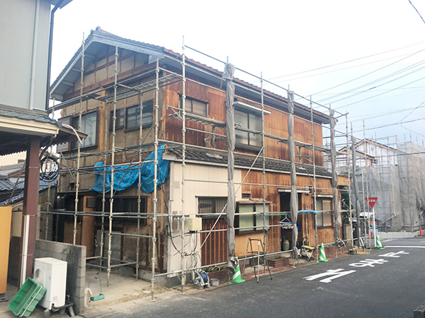 外部は、屋根瓦をそのまま残し、トタンをめくり、玄関・お風呂になる部分を増築しました。