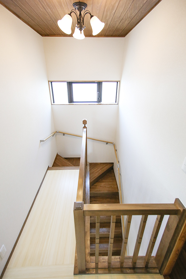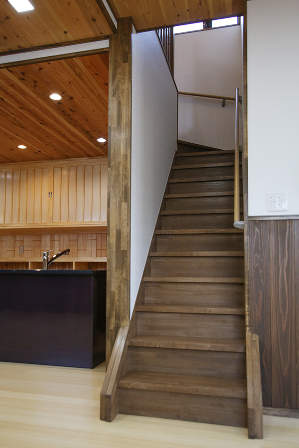 室内は、1階と2階(和室以外)の各部屋の土壁を壊したり、柱の入れ替え・耐震補強をしながら各部屋の間仕切りをして階段の位置を変えました。