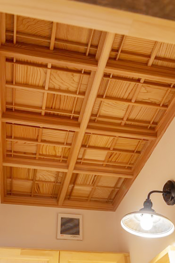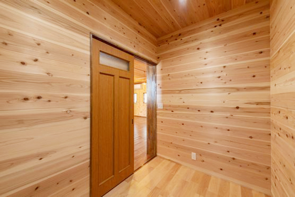 天井は杉板、床はウォールナット、壁はヒノキの板で仕上げてあります。