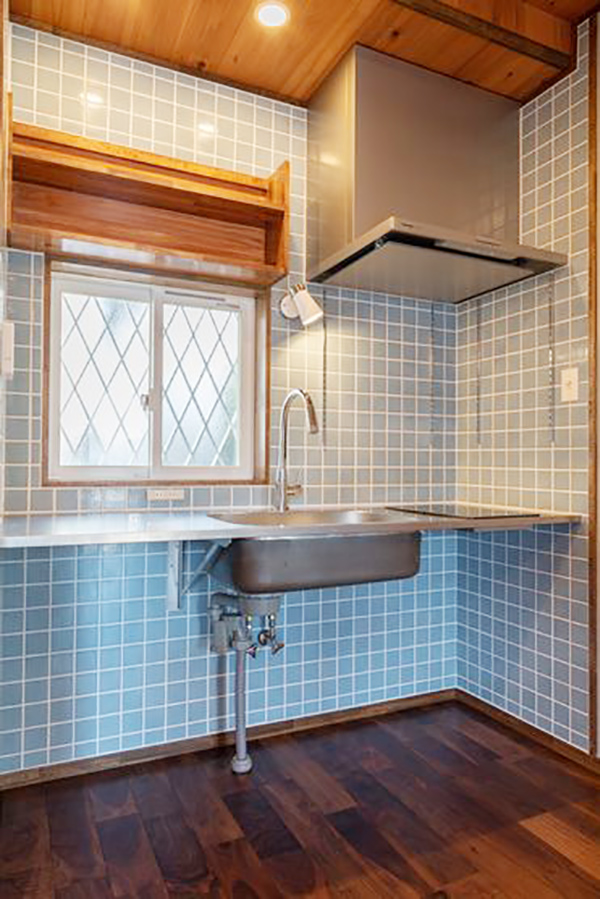 以前ガレージになっていた場所は基礎がブロックで骨組みも弱いため解体し、基礎をやり直し増築して既存の建物と繋げて耐震補強をし、ウォークインクローゼット・トイレ・洗面所・お風呂を収めました。