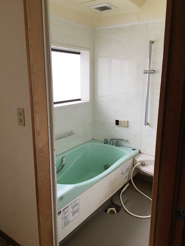 以前の階段は、洗面所の入口にあり、入るのに頭を下げながら入らないといけなかったので、階段の位置を変え、勾配を鈍くして上がりやすくしてあります。