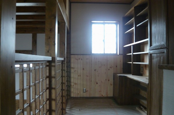 階段の途中の踊り場から旦那さんの一坪の隠し部屋があり、