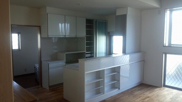 キッチンは、普段私たちが施工(少しでも経費をお客様に還元するため)するのですが、難しくて業者に施工を依頼した奥様のこだわりのキッチンです。