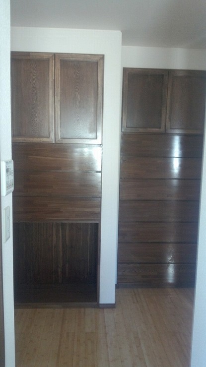 お客様のご依頼で造作家具をたくさん取り付け、収納がとても便利になっています。