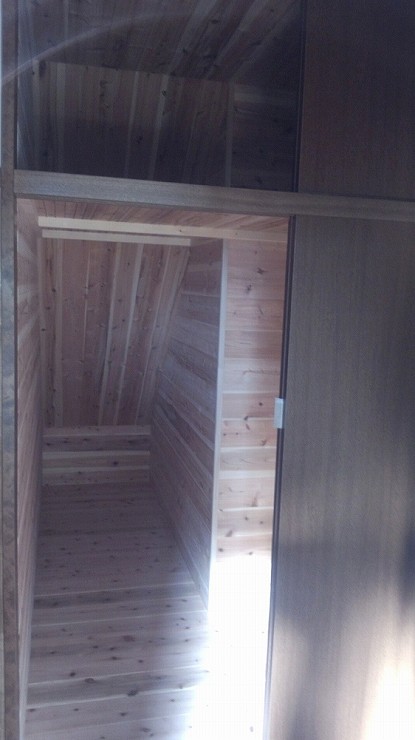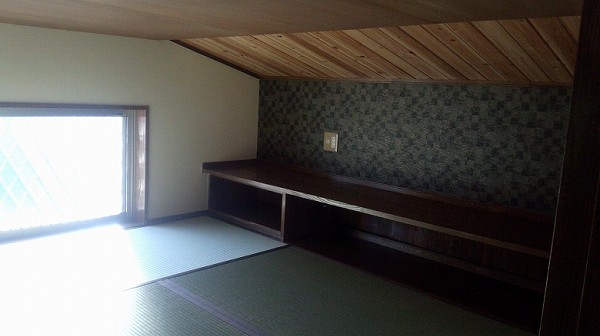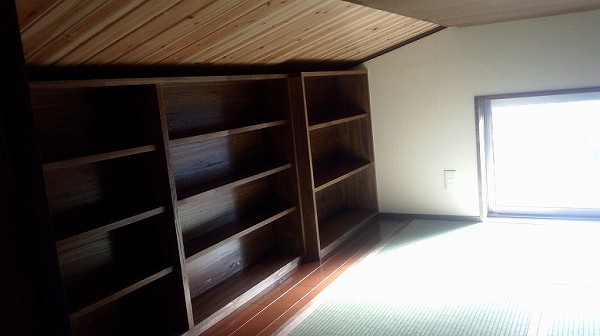 屋根裏は、息子さんの隠し部屋になっていて、畳を敷き本棚を造り狭いながらも楽しい空間ができました。