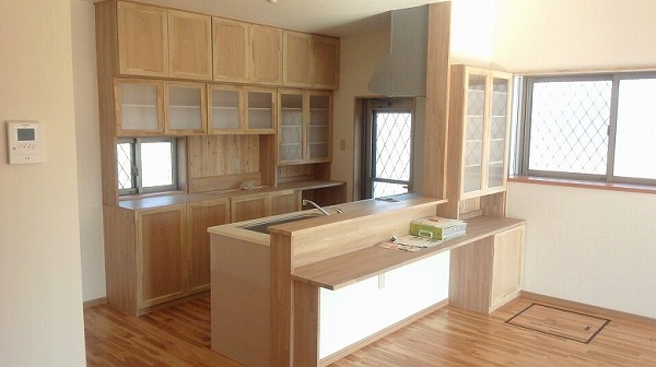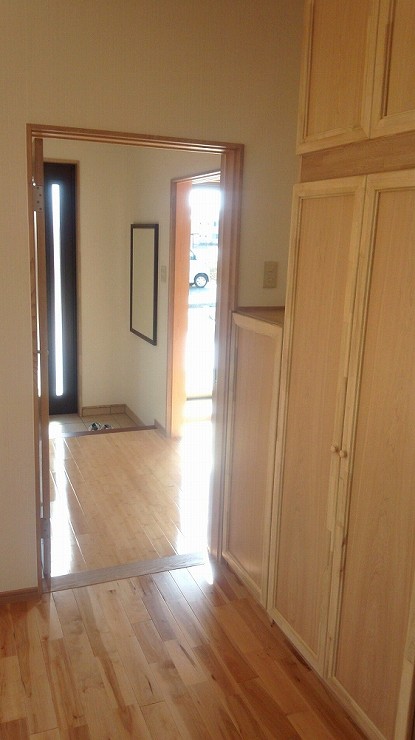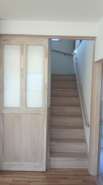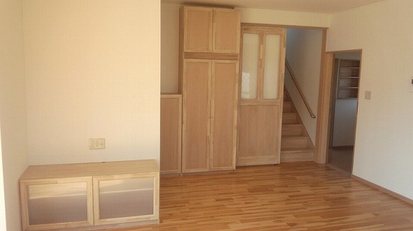 お客様のご希望で建具・造作家具・人口枠・額縁を明るく仕上げてあるので、家全体がやさしい感じに仕上がっています。