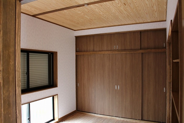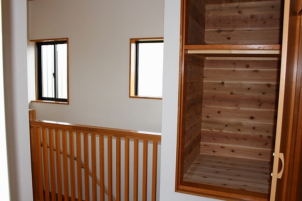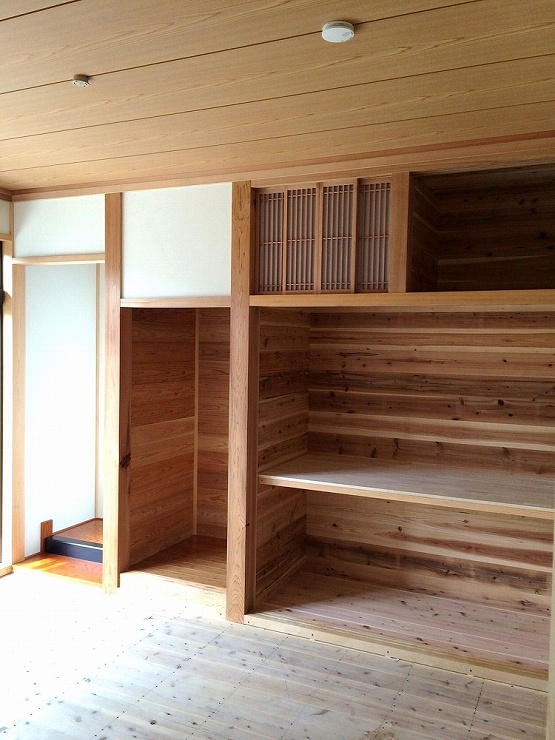 押し入れや収納の中は、杉板を張って湿気がこもるのを防いでいます。