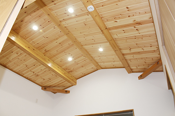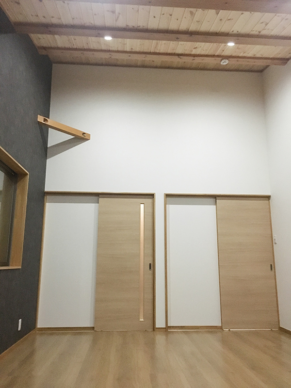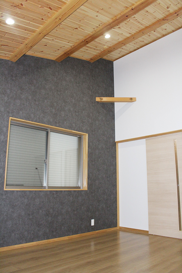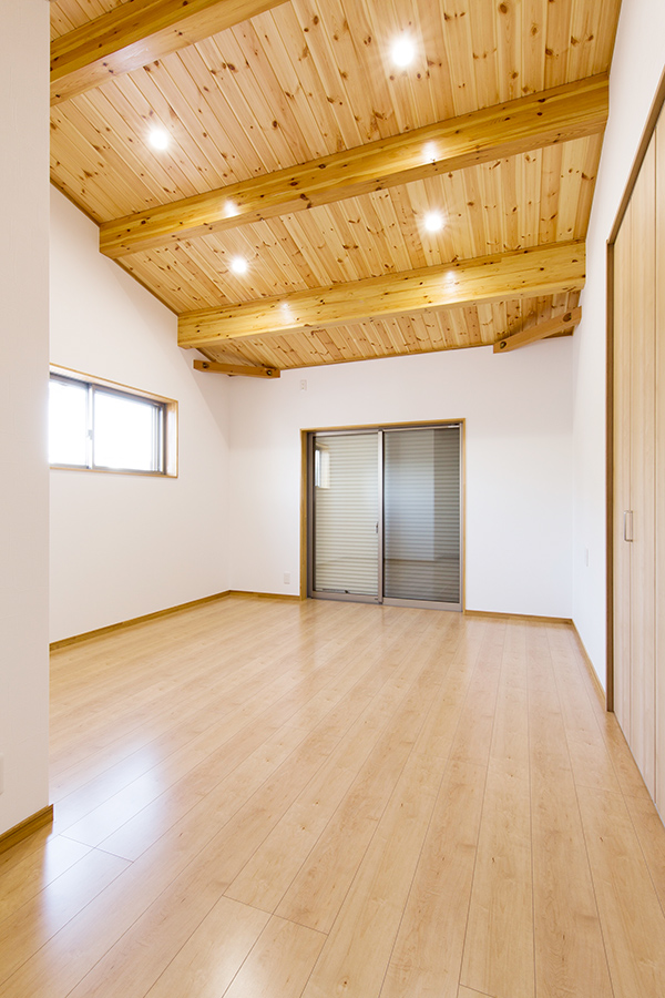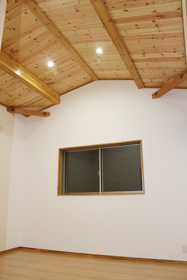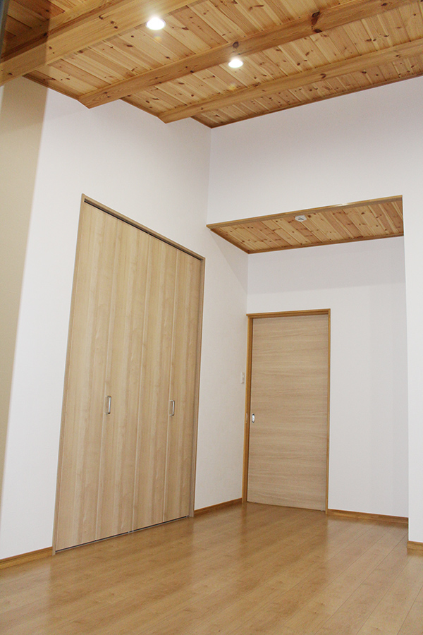 お子様の2部屋は、それぞれ天井の角度を変え、杉板で仕上げたクロゼットを造りました。