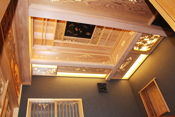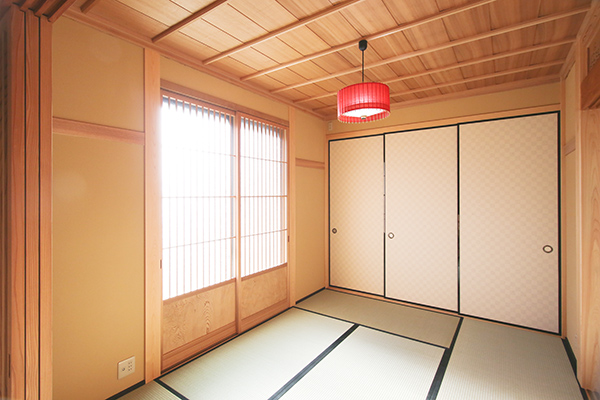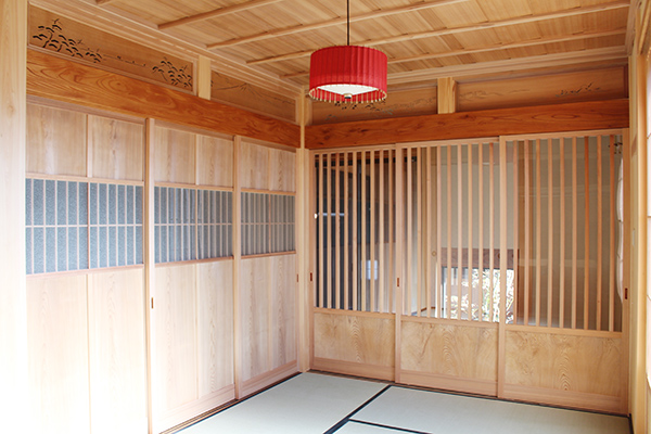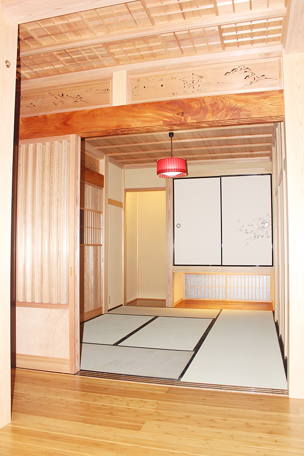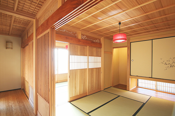 和室は猿頬天井、ケヤキの差し鴨居、欄間・杉の建具など豪華に仕上げてあります。