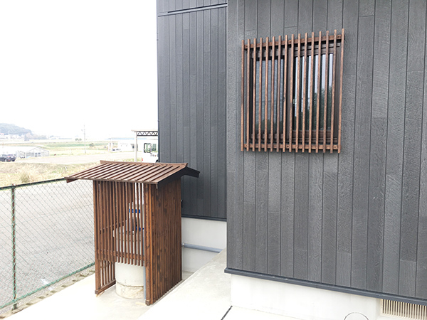 外部から始まり、板・ガルバ・ジョリパット・サイディングとお悩みになられていましたが後のメンテナンス等をお考えになり、コーキングレスのサイディングを張り、ガレージは蔵風に仕上げました。