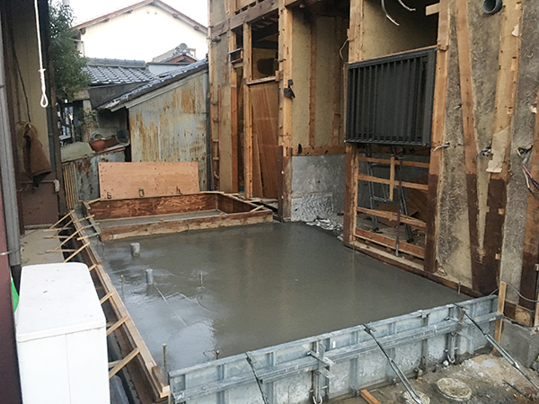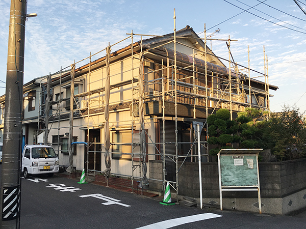 外部は、屋根瓦をそのまま残し、トタンをめくり、玄関・お風呂になる部分を増築しました。