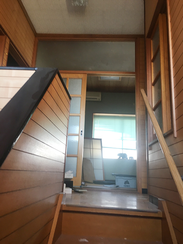 室内は、1階と2階(和室以外)の各部屋の土壁を壊したり、柱の入れ替え・耐震補強をしながら各部屋の間仕切りをして階段の位置を変えました。